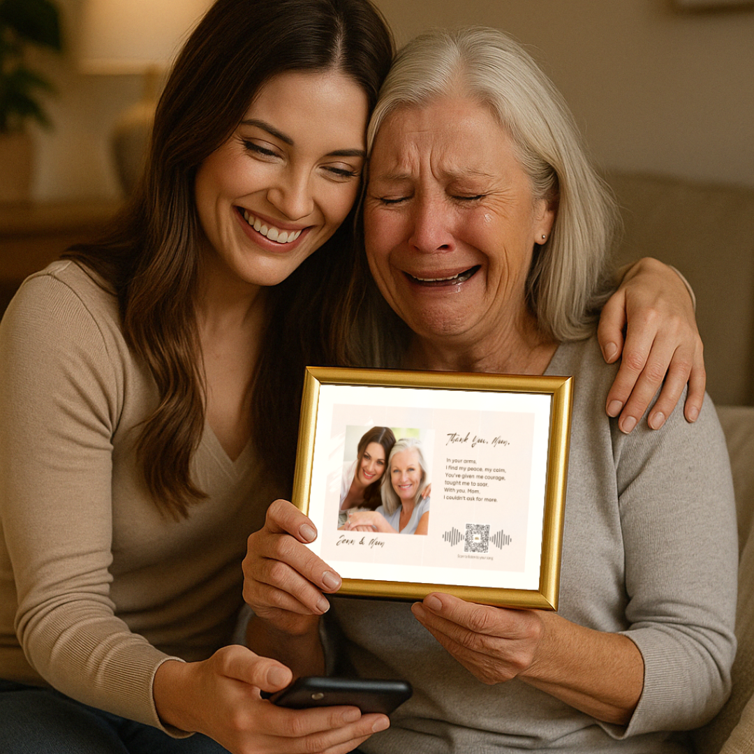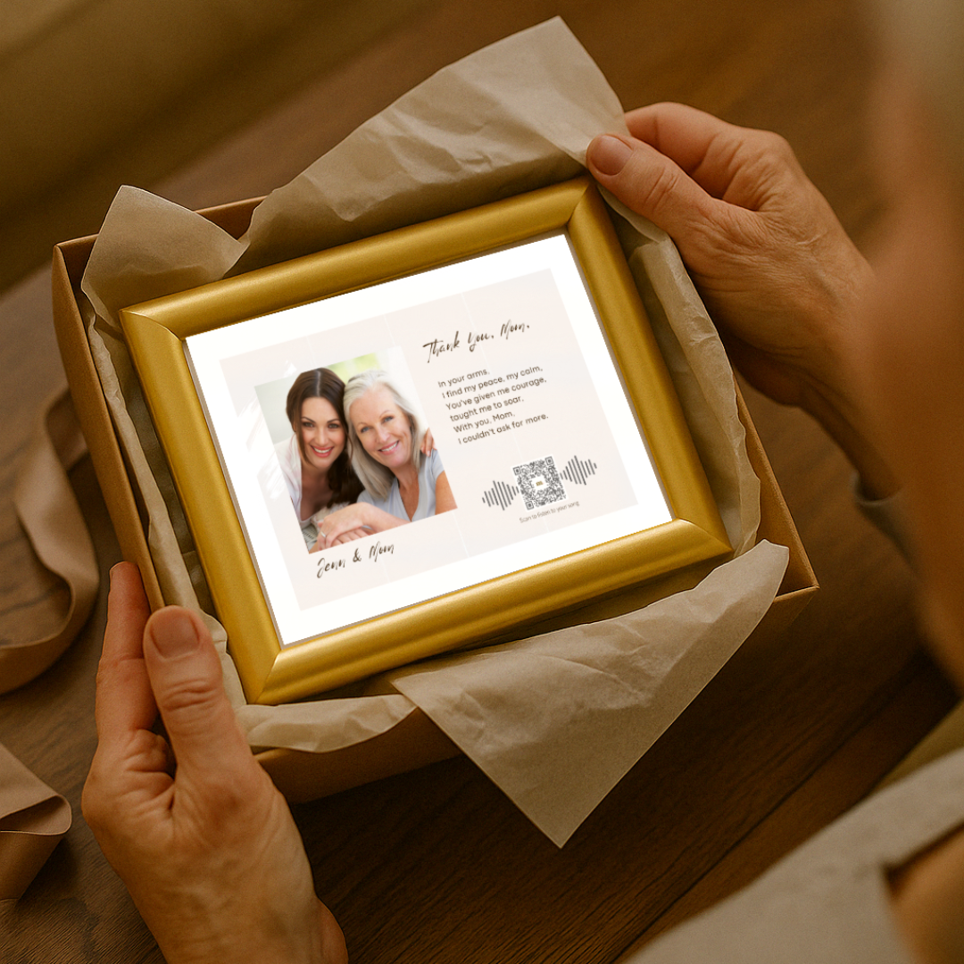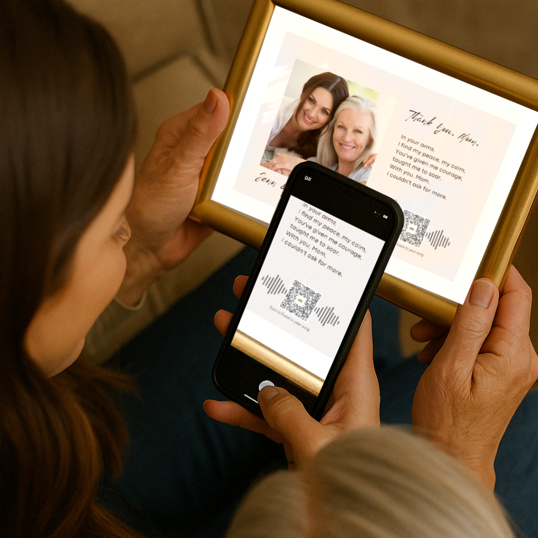 Receive your personalized frame with the QR code. Simply scan it and relive that special moment again and again.